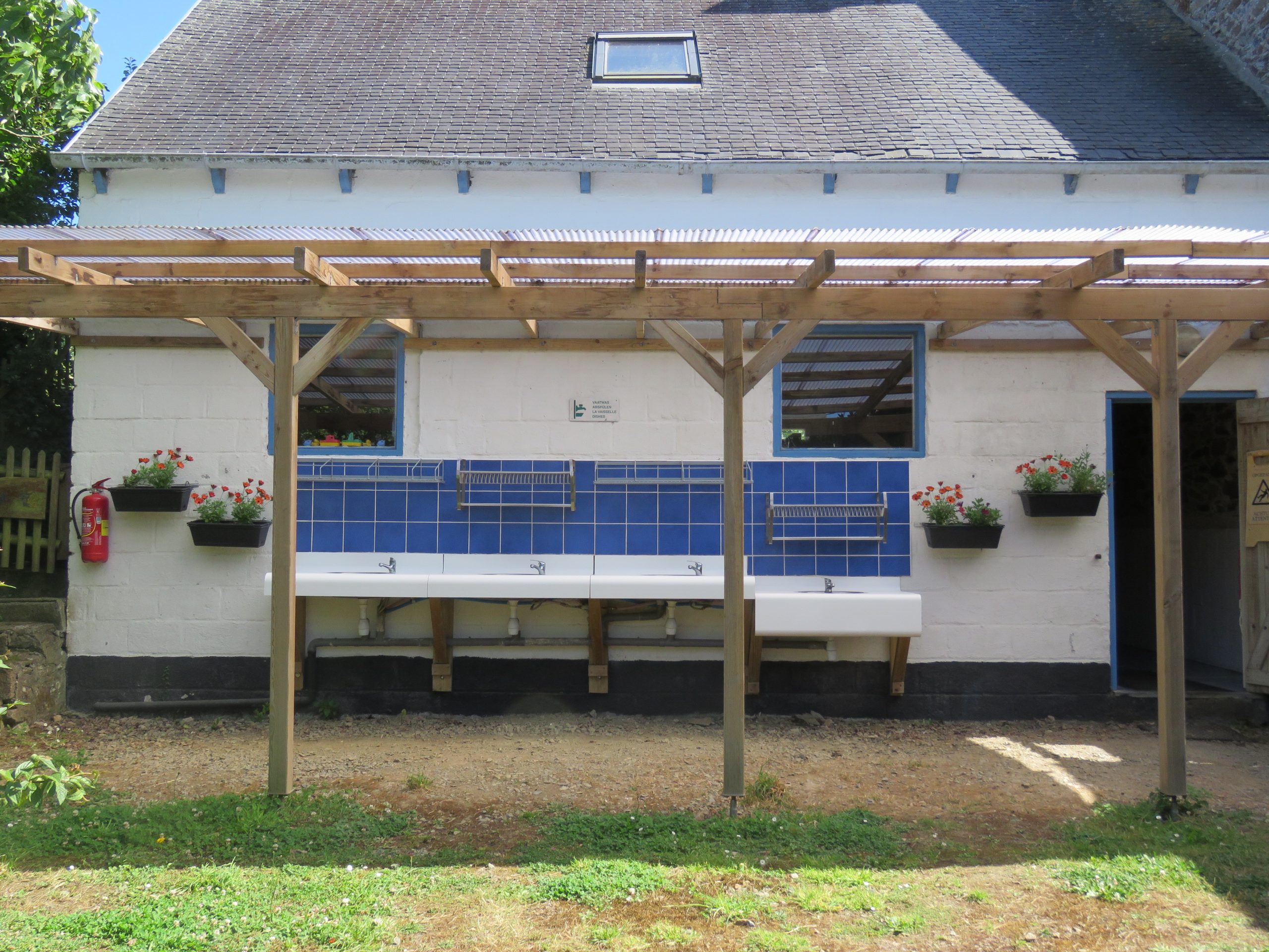 Een mooi en goed onderhouden sanitairgebouw met gratis 4 warme douche’s en 4 toiletten, staan tot uw beschikking.