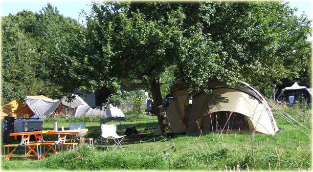 De plekken liggen in de oude appelboom gaard en zijn gescheiden door een natuurlijk gras randt met wilde bloemen.