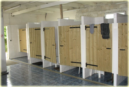 Vier gratis warme douche’s en vier toiletten staan tot uw beschikking.