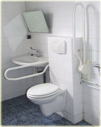 Ook is er een invalide badkamer met douche, toilet,en wastafel.